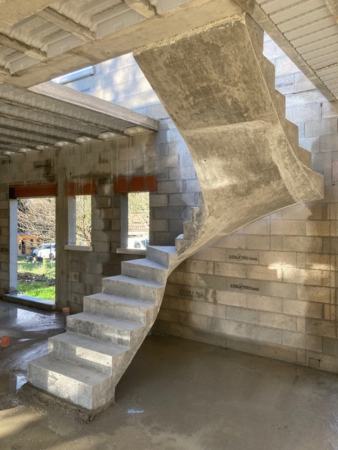 Concoction palpitante d'un escalier à paillasse, avant la pose d'un béton ciré, dans une maison à Périgueux près de Vergt et Douville.
