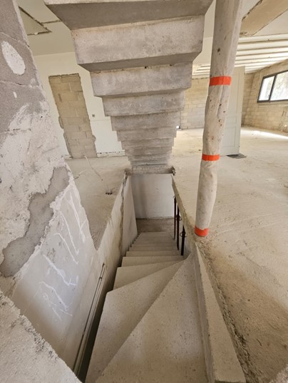 Escaliers béton réalisés dans une maison à Saint-Clément-de-Rivière, en Occitanie.