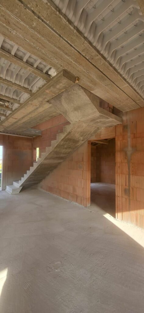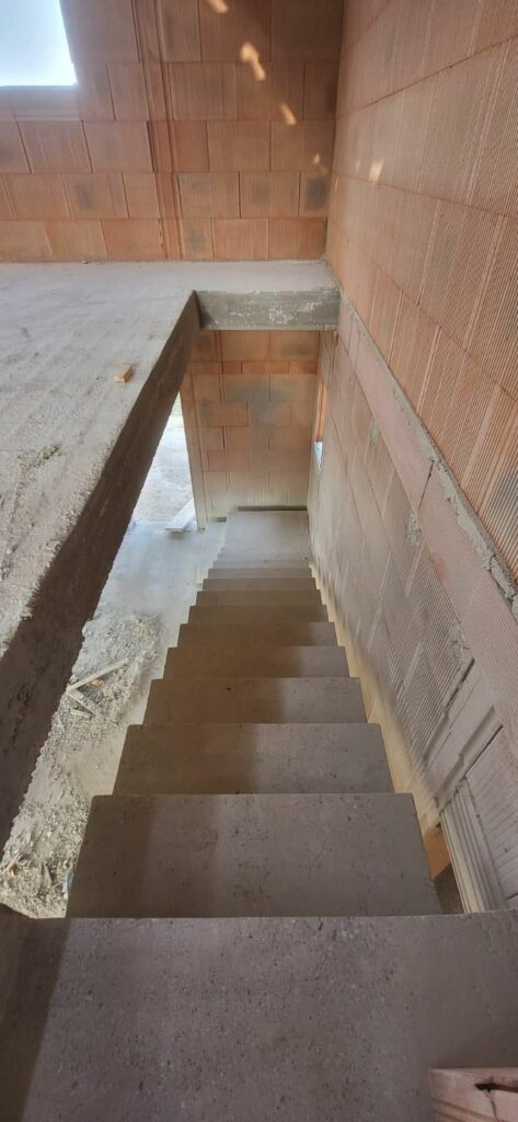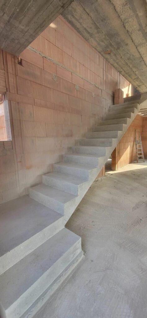 💥 Réalisation d’un escalier à paillasse avec 2 paliers intermédiaires en béton brut de décoffrage. Dans le joli village pittoresque du vin de Sablet, niché entre Orange et Vaison la romaine, au pied des dentelles de Montmirail.