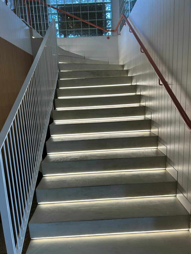 💥 Conception d’un escalier avec réservations led et très large emmarchement, pour un restaurant.