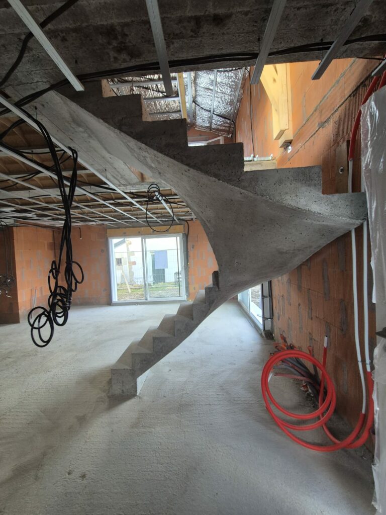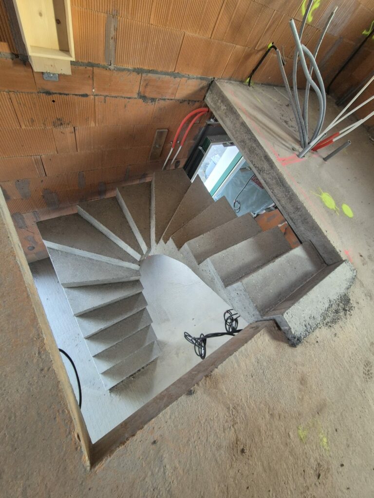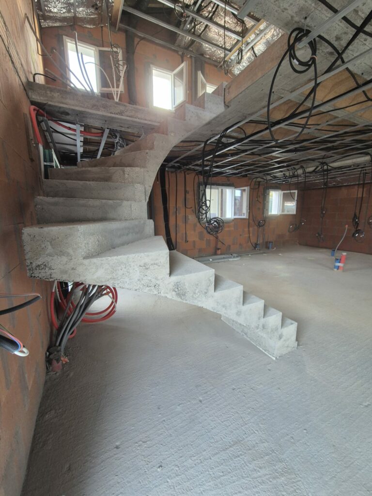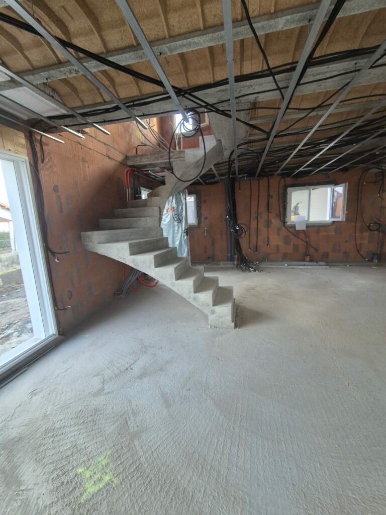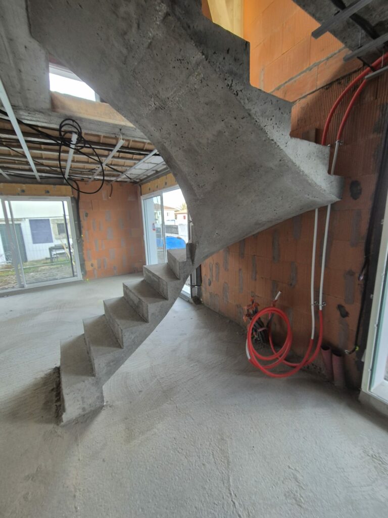 Réalisation d’un escalier béton 2/4 tournant pour un constructeur à Ustaritz, dans le Pays Basque.