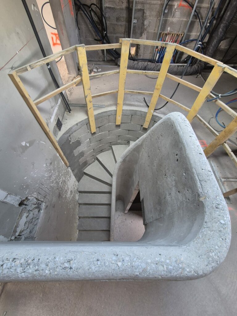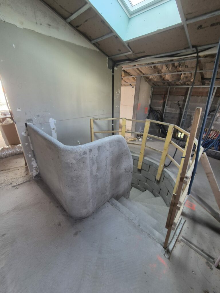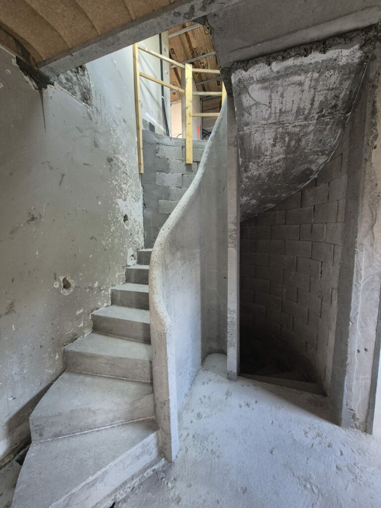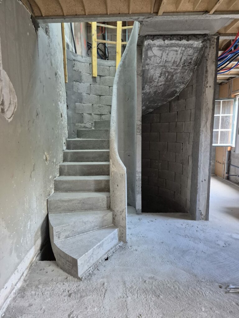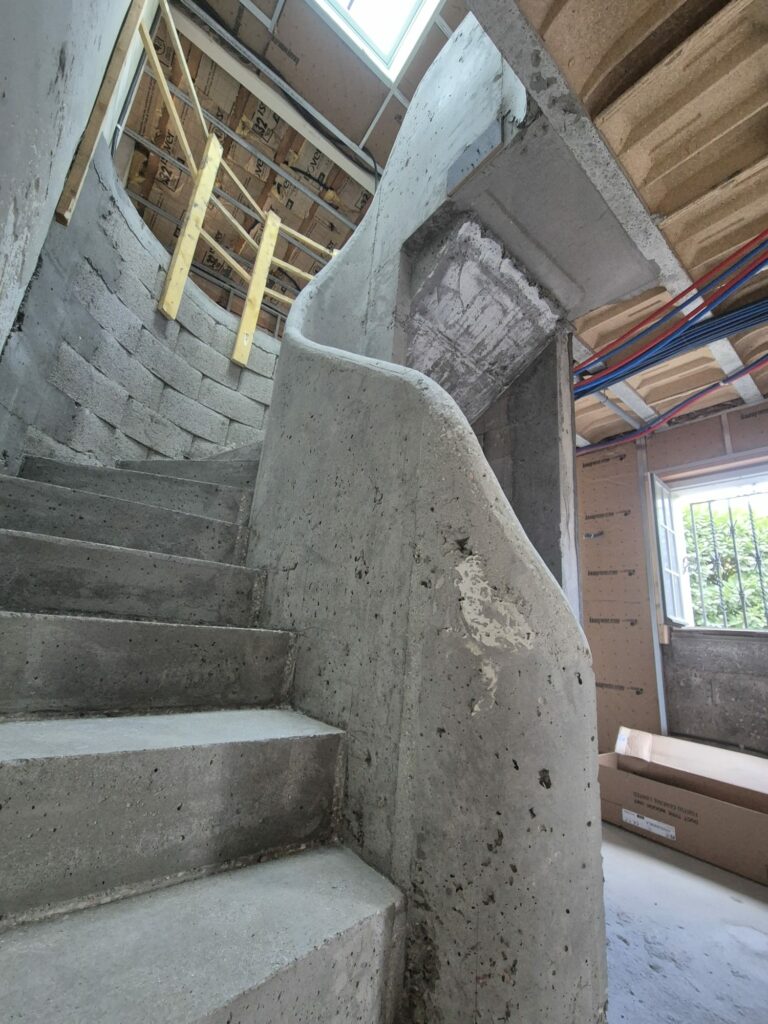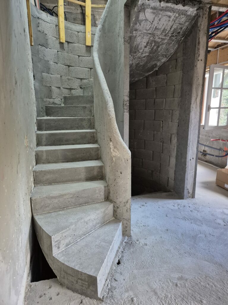 Réalisation d’un escalier en béton double hélicoïdal pour une maison d’architecte à Ciboure, dans le Pays Basque.