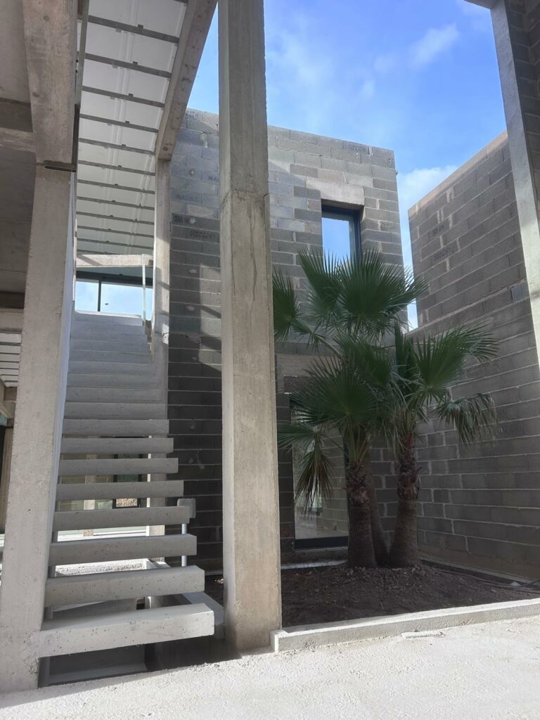 La structure disparaît au profit de lignes franches et minimalistes, laissant le béton s’exprimer dans toute sa matérialité. Un choix esthétique assumé, où légèreté visuelle et robustesse constructive se rencontrent.
