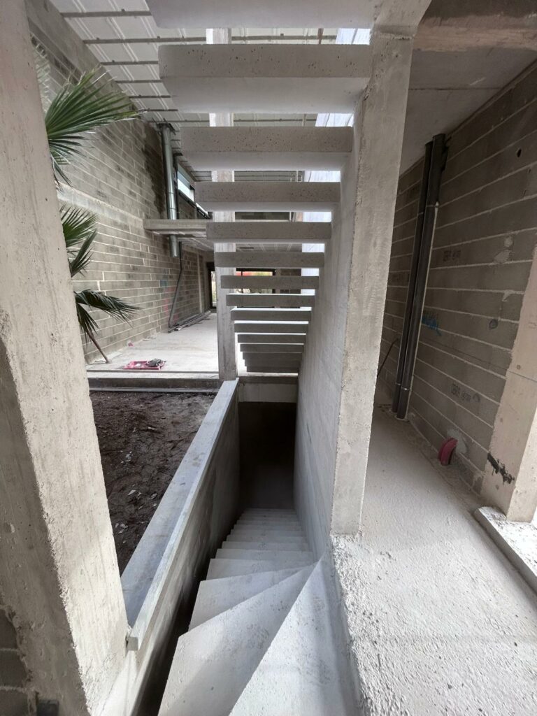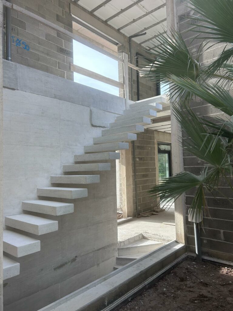 💥 Réalisation de deux escaliers en béton brut pour un constructeur à Gémenos, dans les Bouches-du-Rhône.