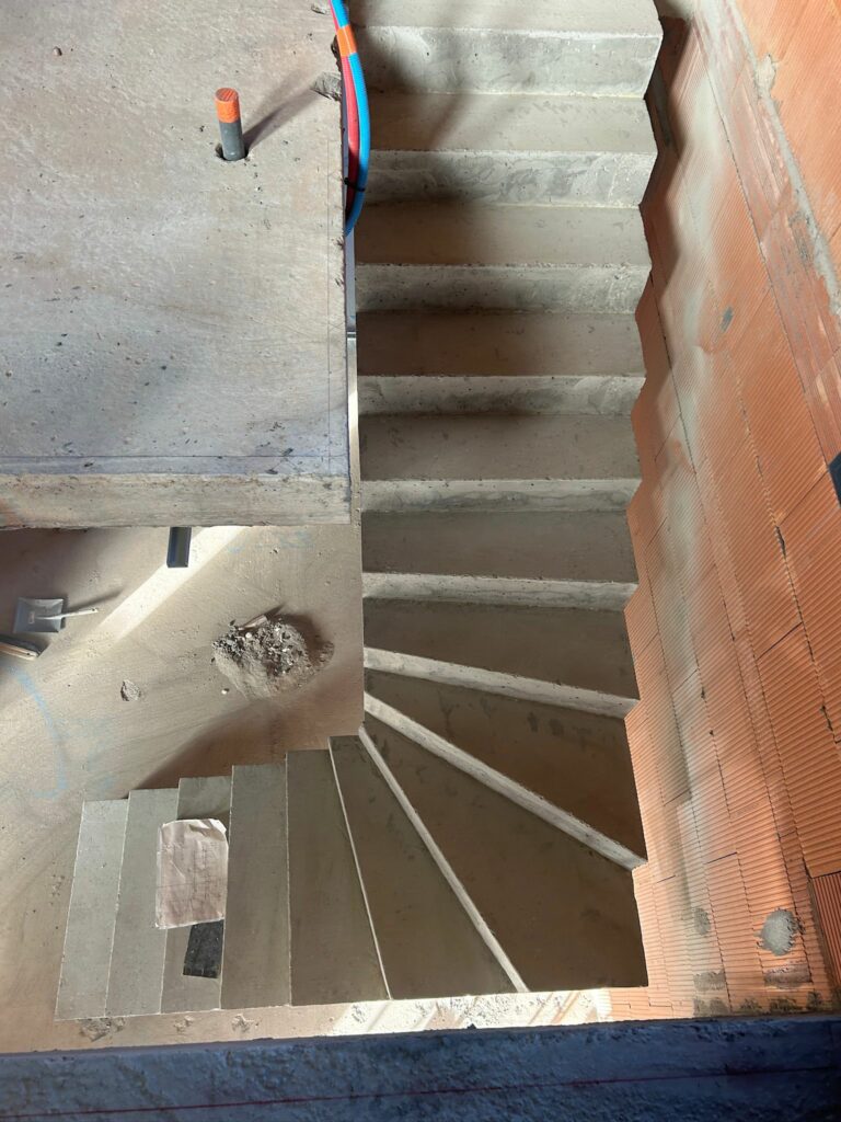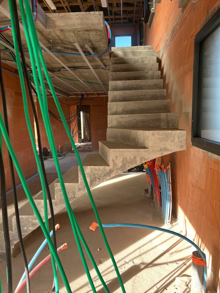 Le béton brut met en valeur le travail de coffrage et la précision des formes, offrant une base idéale pour une future finition (béton ciré, peinture ou habillage) selon l’ambiance souhaitée.
